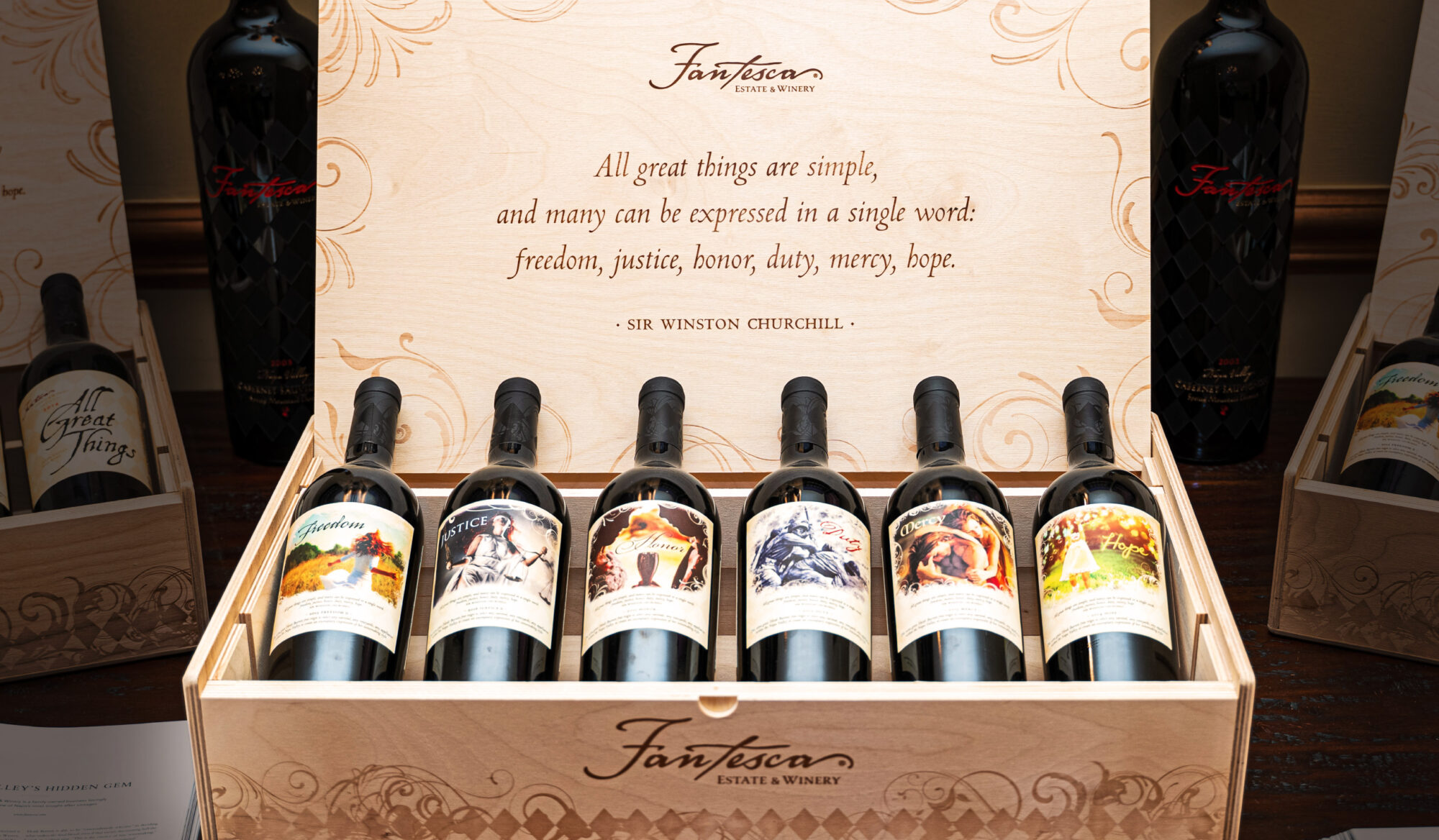 Working with Fantesca Estate & Winery for almost 20 years has been one of our most rewarding creative partnerships. From the very beginning, DESIGNTHIS! has played an integral role in building and evolving their brand identity—from creating their wine packaging to designing their website and shaping email campaigns to developing event graphics that change with the seasons.